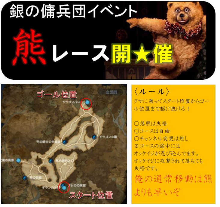 ルールは画像の通り、熊に乗ってゴールを目指す!ただそれだけだ!