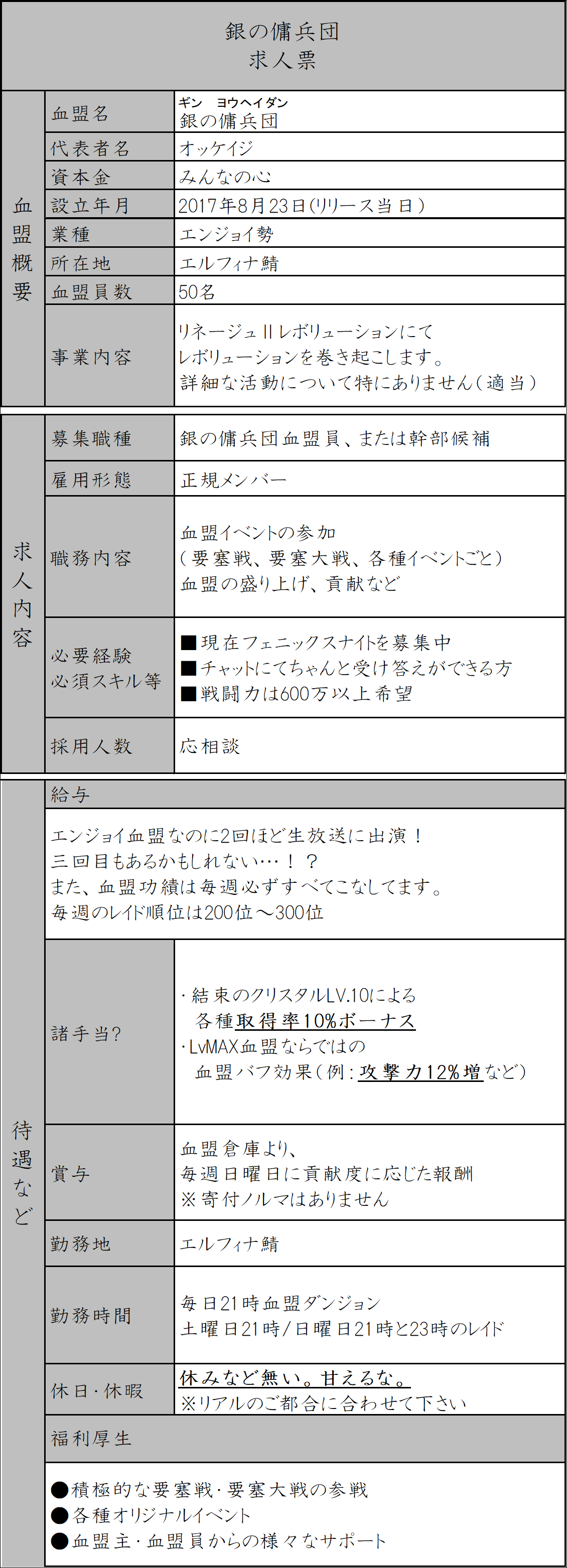 銀の傭兵団求人票